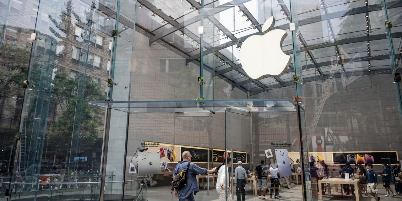 In late trading, Apple shares are down 2.3%.