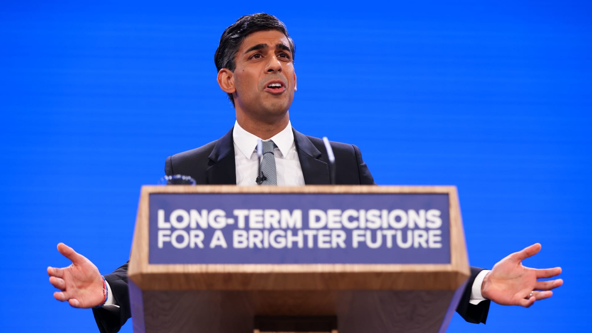 Sunak had intended to use the conference to strengthen support among party members and the electorate at large ahead of next year’s general election, unveiling a new campaign slogan: “Long-term decisions for a brighter future.”