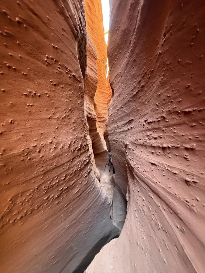Already as far into “the middle of nowhere” as I have ever been, we arrived at the most technical of the slot canyons we’d face, where the definition of this mountainous feature crystallized in stark reality. You see, slot canyons are narrow passages carved through sandstone by millennia of flash floods, some sections barely wide enough for a person to squeeze through sideways, with towering walls that block out the sky and create a disorienting sense of enclosure.